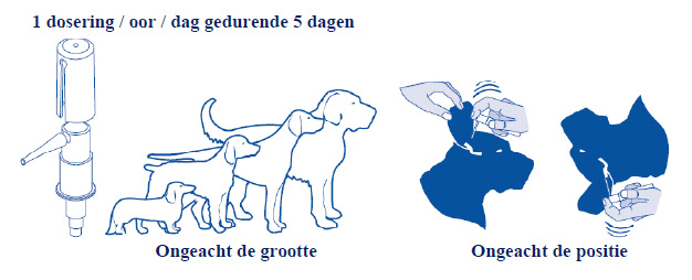 De aanbevolen dosering is 1 ml per besmet oor, éénmaal per dag gedurende vijf opeenvolgende dagen.